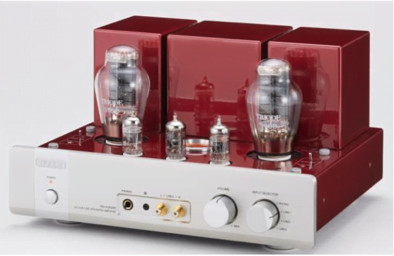 Amplificatore integrato stereo a valvole single ended in classe A Valvole: 300B x 2, 12AX7 x 1, 12AU7 x 2