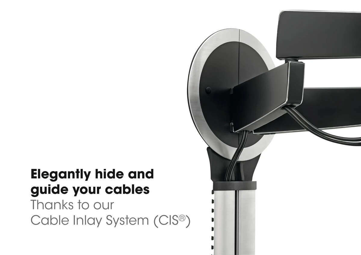 La gestione dei cavi integrata nel braccio e l’uso di velcro per cavi contribuiscono a mantenere un aspetto pulito e organizzato. Ogni dettaglio è curato per offrire un prodotto che soddisfi le esigenze estetiche e funzionali.