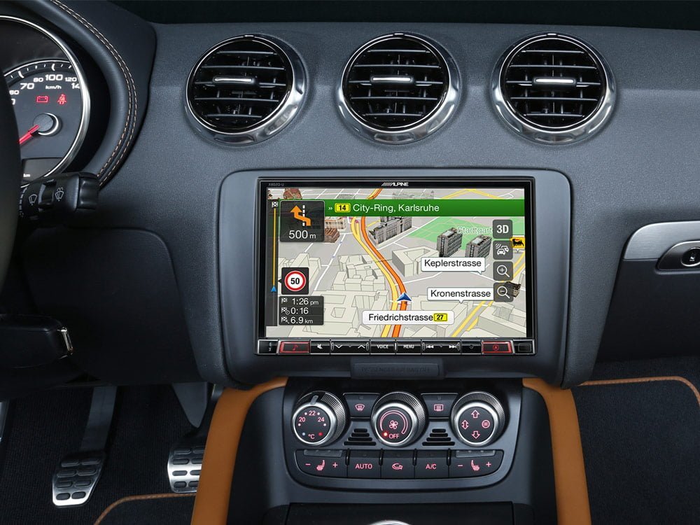 Il sistema Alpine è in grado di mantenere la visualizzazione delle informazioni sul display originale presente nel quadro strumenti. Potrai quindi continuare a vedere i nomi delle stazioni radio, i titoli dei brani, le informazioni sull’artista, i nomi dei chiamanti e le frecce di navigazione passo-passo direttamente sul display del veicolo.