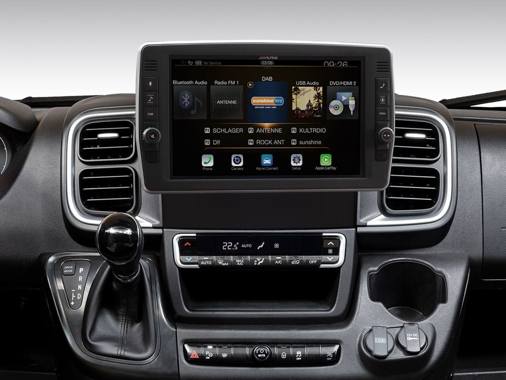 Alpine offre un sistema di navigazione su misura, che si lega perfettamente al cruscotto e all’elettronica del Ducat 8. Tutti i componenti necessari per l’installazione sono inclusi per rendere l’installazione il più semplice possibile. Il monitor dell’X903D-DU8S può essere rivolto verso il conducente o il co-driver. Ciò semplifica l’input di destinazione e migliora la visibilità del display anche alla luce diretta del sole.