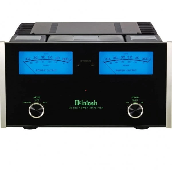 MC302 features classic McIntosh amplifier styling combined with advanced audio performance. Larger easier to read Watt Meters, New Style Mcintosh engineered binding posts and the latest advancements in circuit design combine to make MC302 the Value McIntosh amplifier. The MC302 Power amplifier has continuous average power output rating of 300 watts per channel, with a peak output current of 60 amperes.