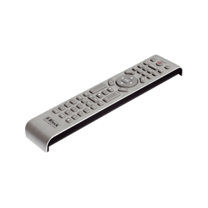 Custodia in metallo, telecomando di sistema, logo in rilievo sulla piastra superiore