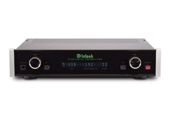 PREAMPLIFICATORE DIGITALE / CONVERTITORE D/A – GRAZIE ALLE SUE CARATTERISTICHE IL MCINTOSH D-100 PUO` ESERE UTILIZZATO COME CONVERTITORE D/A ALL’ INTERNO DI UN SISTEMA GIA` ESISTENTE O ASSOLVERE LE FUNZIONI DI PREAMPLIFICATORE ALL’ INTERNO DI UN SISTEMA CON FONTI UNICAMENTE DIGITALI, INFATTI, GRAZIE ALL’ AMPIA SCELTA DI INGRESSI, L’ USCITA ANALOGICA VARIABILE CAPACE DI PILOTARE DIRETTAMENTE UN FINALE E IL TELECOMANDO, E` IN GRADO DI GESTIRE UN IMPIANTO ANCHE MOLTO COMPLESSO – CONVERTITORE A 8 CANALI 32 BIT/192 KHZ IN CONFIGURAZIONE STEREO QUAD BALANCED – 2 INGRESSI S/PDIF, 2 OTTICI, 1 USB – USCITA FISSA E VARIABILE (FINO A 16 V) SIA BILANCIATA CHE SBILANCIATA – POWER CONTROL – USCITA CUFFIA – DIMENSIONI 445 X 98 X 406 MM (LXAXP) – PESO 6,1 KG