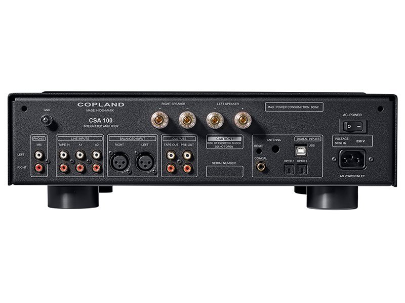L’amplificatore integrato CSA100 fa parte dell’ultimo lavoro di Copland, con l’obiettivo di combinare i vantaggi dell’amplificazione di tubi e transistor utilizzando il concetto di progettazione sinettica che in precedenza ha reso gli amplificatori ibridi Copland ampiamente acclamati.