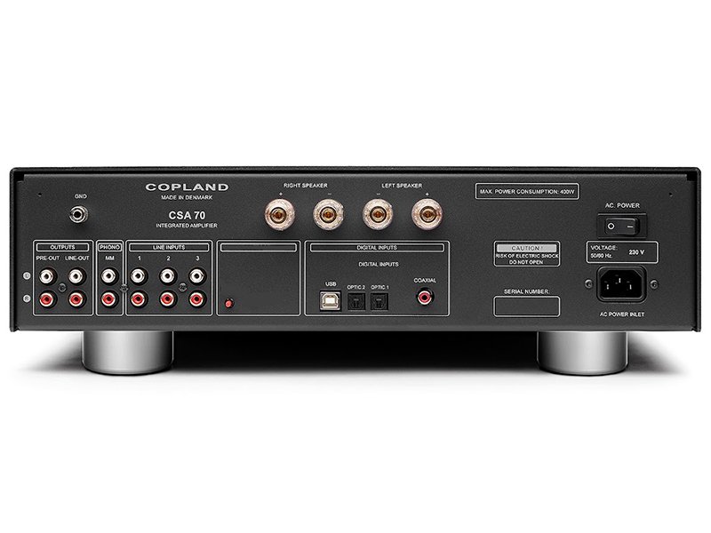 Creato per l’amante della musica dedicato, il CSA70 è progettato per fornire prestazioni audio eccezionali che smentisce la sua potenza nominale e il suo prezzo. Il CSA70 fornisce quattro ingressi digitali, tre ingressi analogici, funzione di uscita di linea, nonché terminale di pre-uscita, uscita per cuffie frontale da 6,3 mm e un amplificatore di potenza da 70 Watt per canale che sorprenderà gli utenti che pensavano che i loro altoparlanti fossero affamati di energia. Per gli appassionati di vinile abbiamo incluso un eccellente preamplificatore phono.