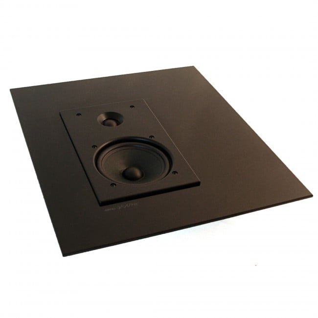 Graphic is a 2-way bassreflex speaker. Placed on the wall, it provides powerful bass reproduction because the angled, rear-firing bass reflex port uses the wall as an acoustic amplifier to increase response. This means that the speakers, despite their compact size-just 3.1 inches thick-are capable of outperforming larger speakers.