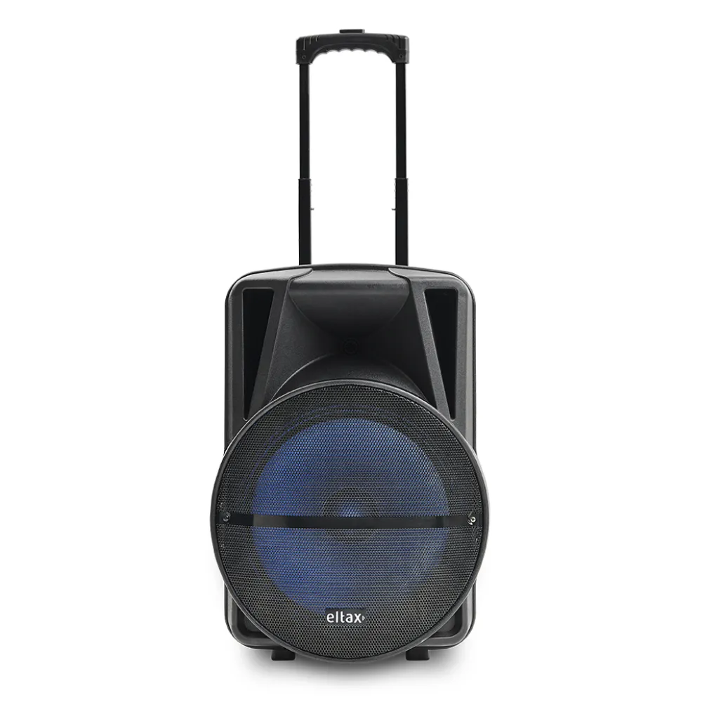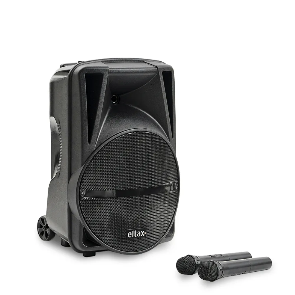 Il Voyager BT 15 MKII è fornito con due microfoni e un telecomando, offrendoti il pieno controllo sulla tua esperienza audio. Il suo design portatile presenta una maniglia di trasporto e ruote integrate, rendendolo facile da spostare ovunque tu vada.