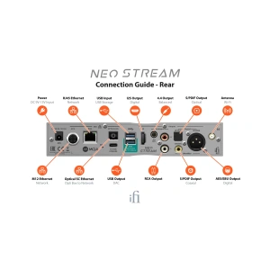Uscite ▪ Analogico – 1x stereo RCA; 1x 4.4mm bilanciato ▪ Digitale ad altissima risoluzione (PCM 768kHz, DSD512) – 1x HDMII2S; 1x USB-A (USB3.0) ▪ Digitale S/PDIF ad alta risoluzione (PCM 192kHz) – 1x ottico; 1x coassiale; 1x AES/EBU.