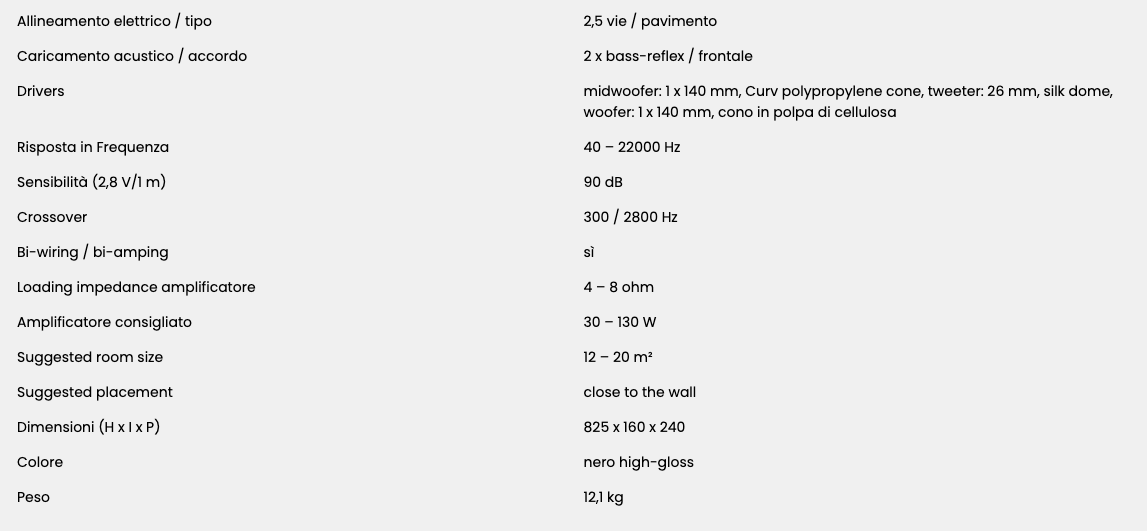 Ogni diffusore della serie Diva sfoggia una finitura elegante in nero lucido, simbolo dell’alta classe del prodotto, che non solo aggiunge un tocco di stile a qualsiasi ambiente ma sottolinea anche l’attenzione ai dettagli e la qualità costruttiva. Questa serie è progettata per offrire un’esperienza d’ascolto immersiva, grazie a un suono privo di distorsioni e con bassi potenti, che trasforma ogni nota in un vero piacere per l’orecchio.
