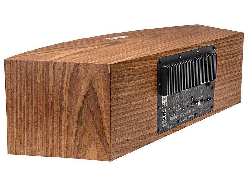 Il JBL L75ms è un sistema audio tutto in uno che unisce l’estetica retrò degli anni ’70 con le funzionalità moderne del 21° secolo. Il cabinet è realizzato con una finitura in legno di noce naturale con effetto satinato e una griglia Quadrex in foam nera, e la parte frontale presenta una curvatura studiata per espandere il fronte sonoro. Il sistema audio è dotato di due tweeter con cupola in titanio da 2,5cm, un midrange centrale da 10cm e due woofer da 13cm caricati in bass reflex, ognuno dei quali è pilotato da un amplificatore dedicato per una potenza totale di 350W RMS.