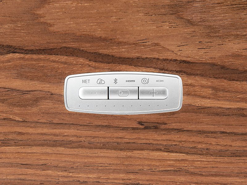 Il JBL L75ms offre una vasta gamma di opzioni di connettività , tra cui Wi-Fi, Chromecast, AirPlay 2 e Bluetooth 4.2, oltre a un DAC interno che riproduce brani fino a 192kHz/32bit. Inoltre, sono disponibili opzioni cablate come un ingresso analogico su jack da 3,5 millimetri, un ingresso phono MM, un’uscita RCA per collegare un subwoofer, una porta Ethernet e una porta HDMI con ARC per utilizzarlo come soundbar collegato a un TV. Il sistema audio è dotato anche di un telecomando e alcune funzioni principali base si trovano anche sul top del cabinet.