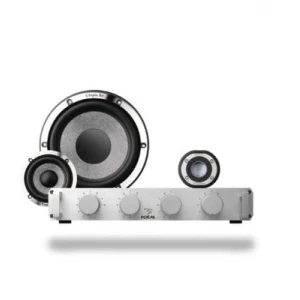 | 3-way System 2x 200/300 Watt (System) 20 mm tweeter 3” phase plug midrange 6,5” dust cap mid-woofer 3 ohm impedance Semi active or full active application |