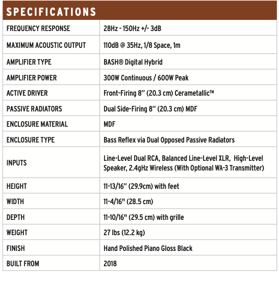 Con il trasmettitore WA-3 opzionale, i subwoofer della serie C possono essere posizionati ovunque in una stanza e ricevere un segnale ad alta definizione tramite trasmissione wireless ad alta definizione a 2,4 kHz. Il chip del ricevitore è integrato proprio nel circuito dell’amplificatore, quindi non c’è un brutto dongle sul subwoofer – solo il grande suono che ti aspetti da un subwoofer Klipsch…completamente wireless.