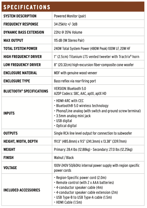 I Nines sono dotati di tweeter in titanio da 1″ su trombe Tractrix®, una tecnologia proprietaria che è stata la forza trainante dietro l’acustica Klipsch incredibilmente precisa. Ogni monitor alimentato dispone anche di un woofer a tiro lungo da 8,0″ ed è portato per fornire bassi migliorati.