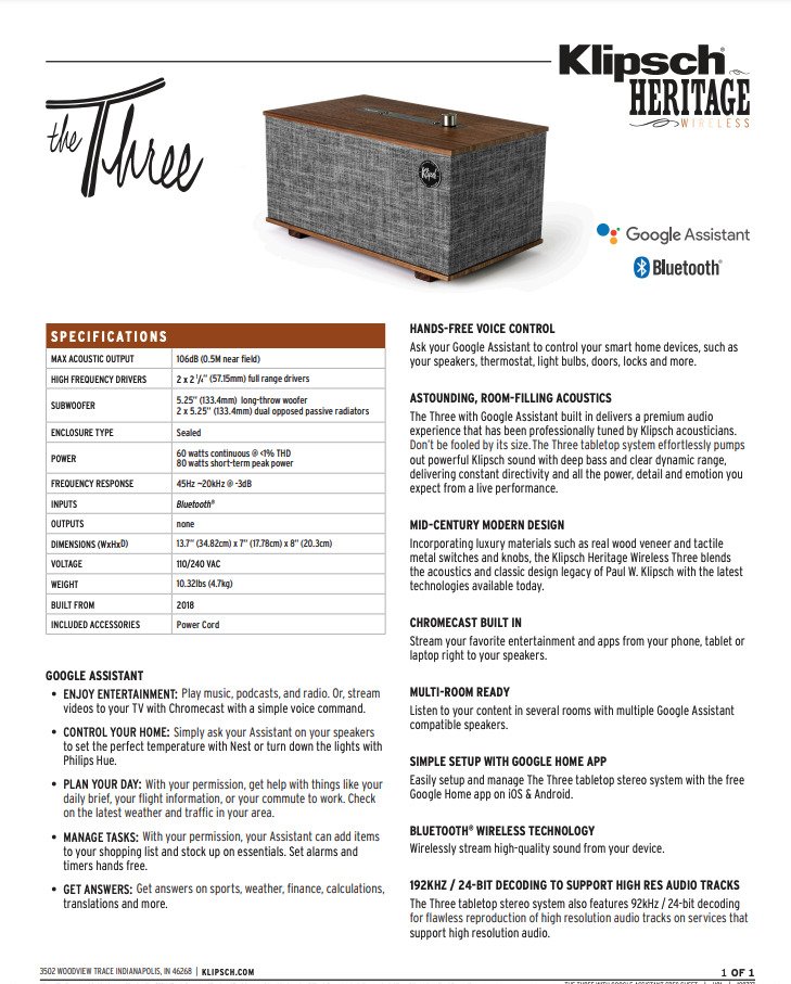 Connettiti alla tua musica, casa, sport, notizie, meteo e altro ancora con l’incredibile suono avvolgente di Klipsch The Three con Google Assistant.