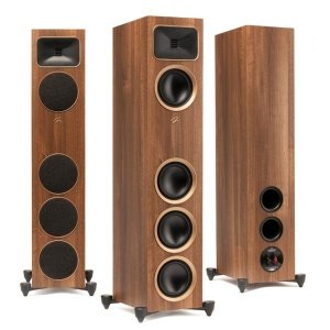 3x 5.5” (14cm) aluminum cones with cast aluminum baskets. Non-resonant asymmetrical chamber format. Unibody cone construction.