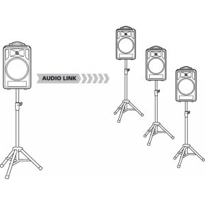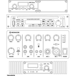 Il radiotrasmettitore integrato del TXA-1022CD trasmette segnali audio in modo wireless a uno o più sistemi TXA-1020. Questa funzione è ideale per la sonorizzazione uniforme di ambienti più grandi.