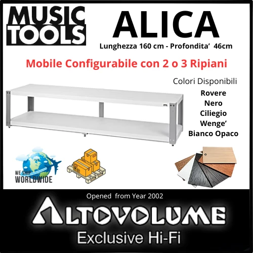 Realizzato interamente in Italia da esperti artigiani, il rack ALICA adotta materiali di prima scelta per garantire la massima resa sonora. L’architettura anti-risonanza, ispirata ai modelli più prestigiosi di MusicTools, riduce le vibrazioni indesiderate, migliorando la qualità del suono riprodotto dal tuo impianto Hi-Fi.