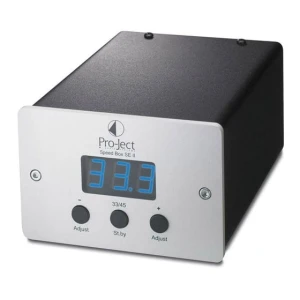 Regolatore elettronico di velocità per i giradischi Pro-Ject (tranne i modelli con regolatore elettronico di velocità integrato). 33/45 con pulsante sul pannello frontale. Dimensioni (LxA): 103x38mm.