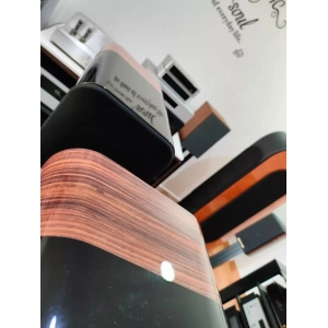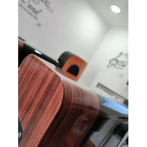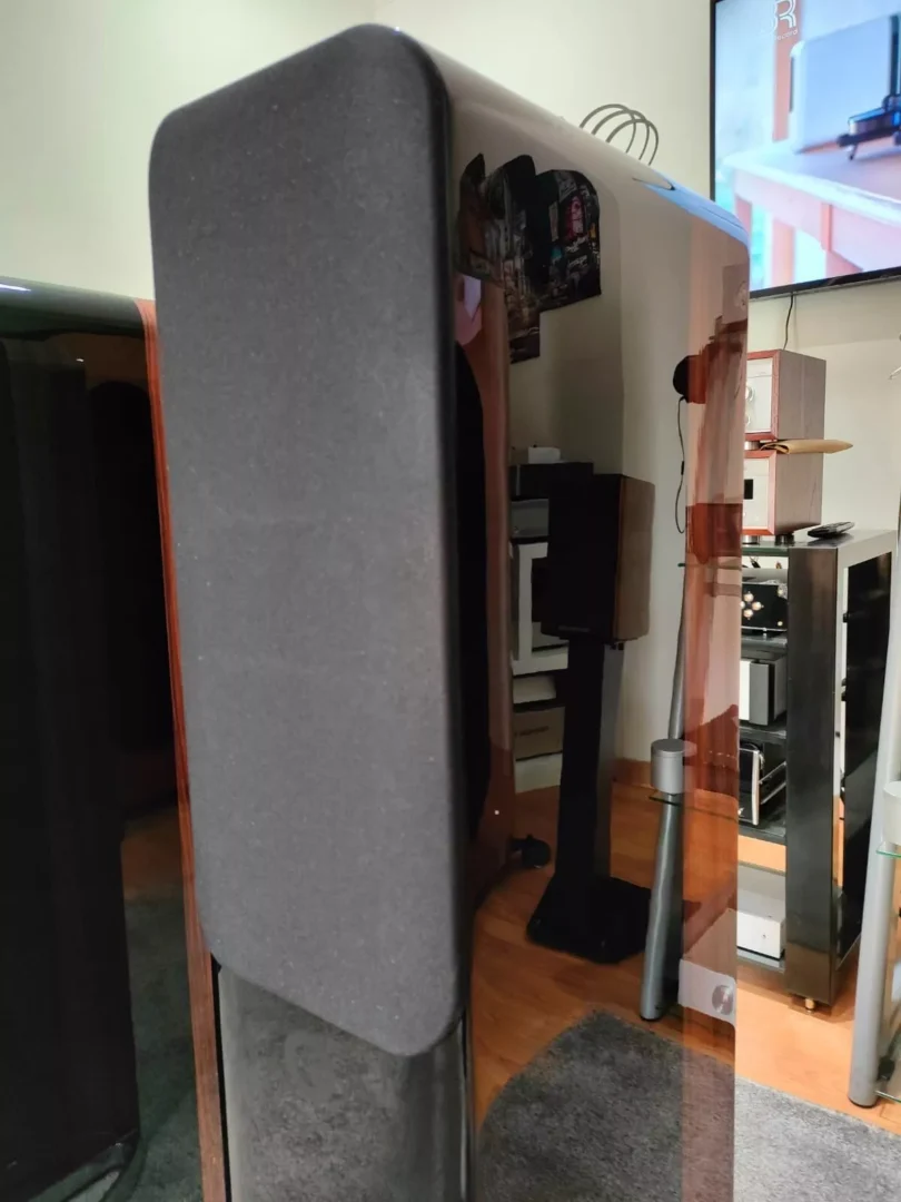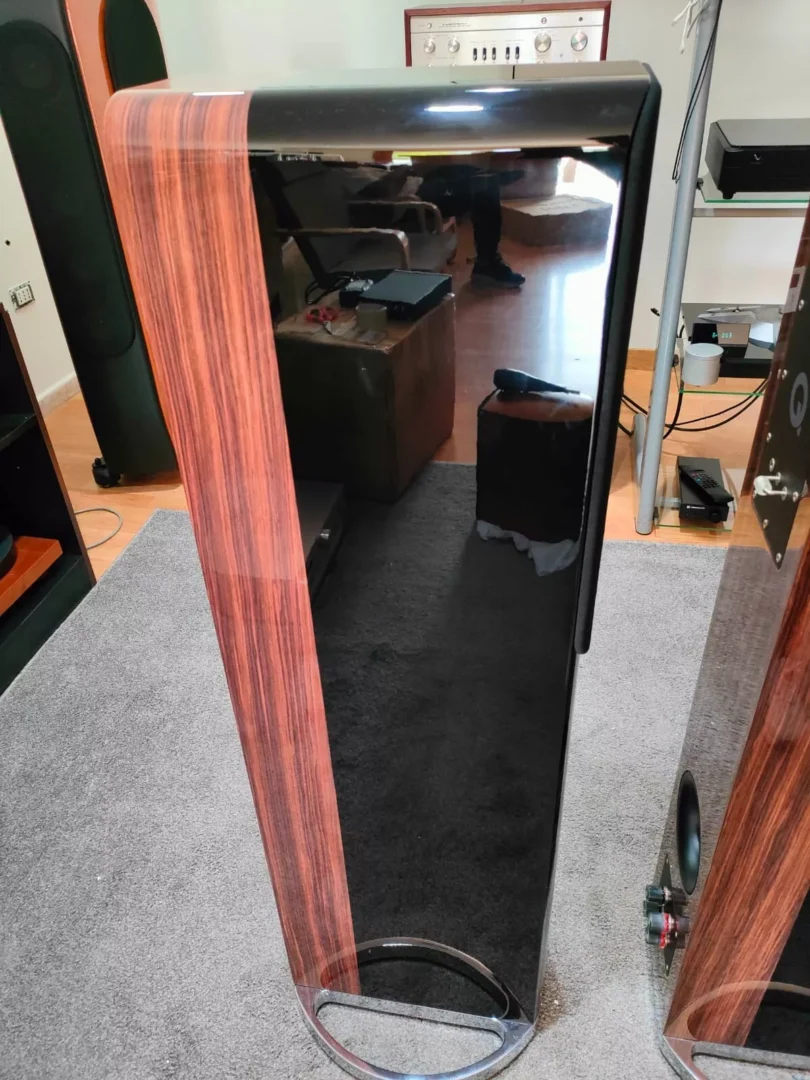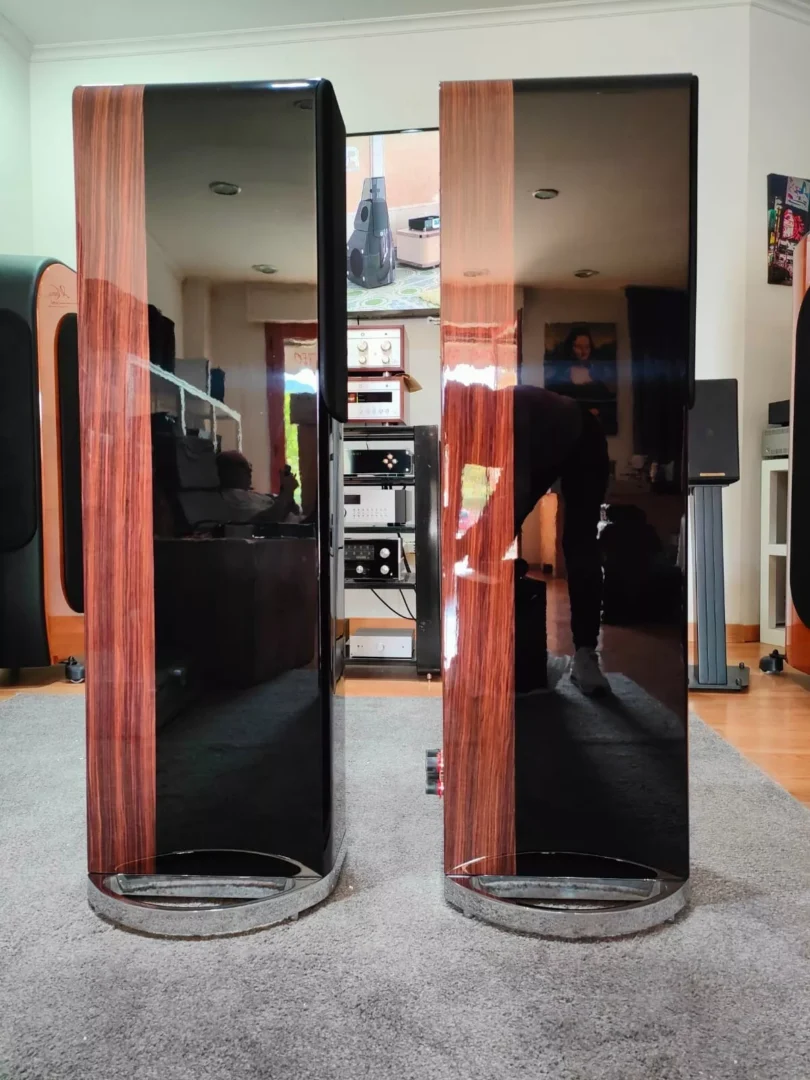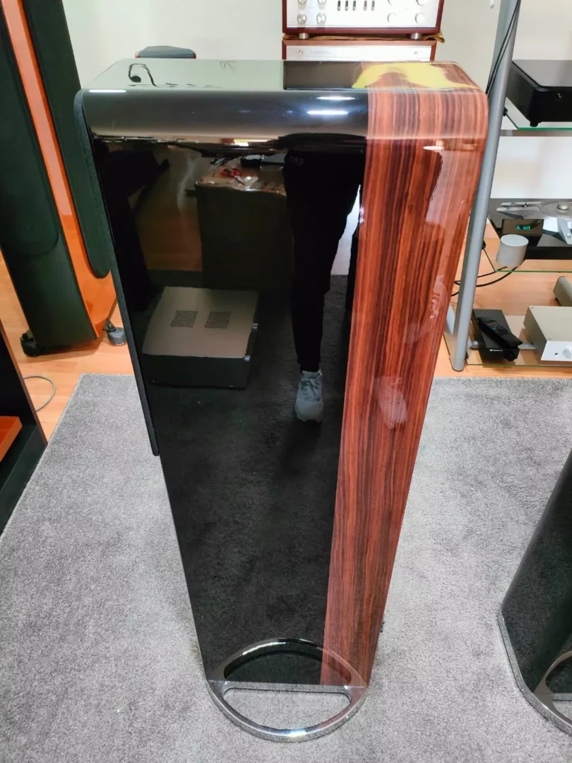 Il Concept 500 non è solo un prodigio tecnologico, ma anche un oggetto di design raffinato. Il cabinet, realizzato in MDF ad alta densità, è rivestito con pannelli in vero legno di altissima qualità. Questi elementi non sono solo estetici, ma contribuiscono attivamente alla performance acustica, smorzando ulteriormente le vibrazioni e le risonanze.