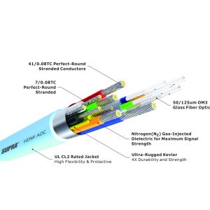 Quindi estendi la tua libertà di installazione e il tuo futuro, utilizzando Supra AOC, stabilendo nuovi standard di velocità e distanze di trasferimento HDMI!